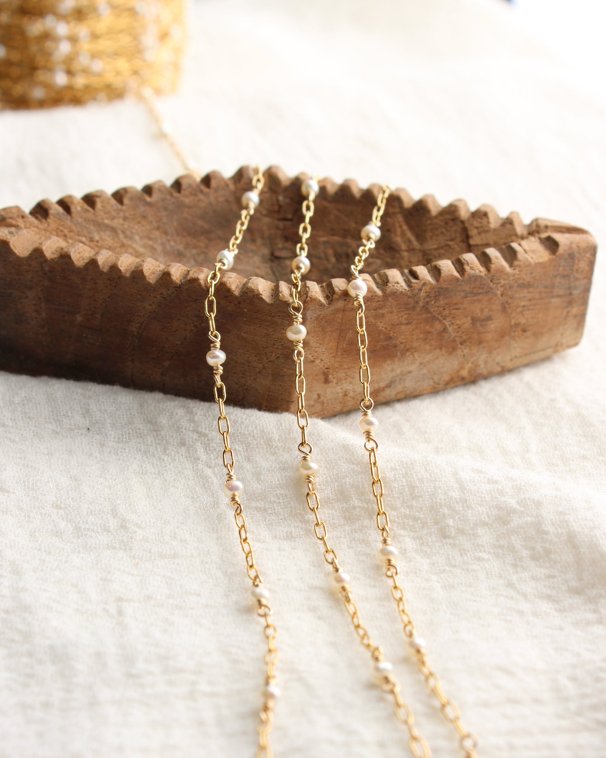 Unfinished footage chain with hand wire wrapped connectors