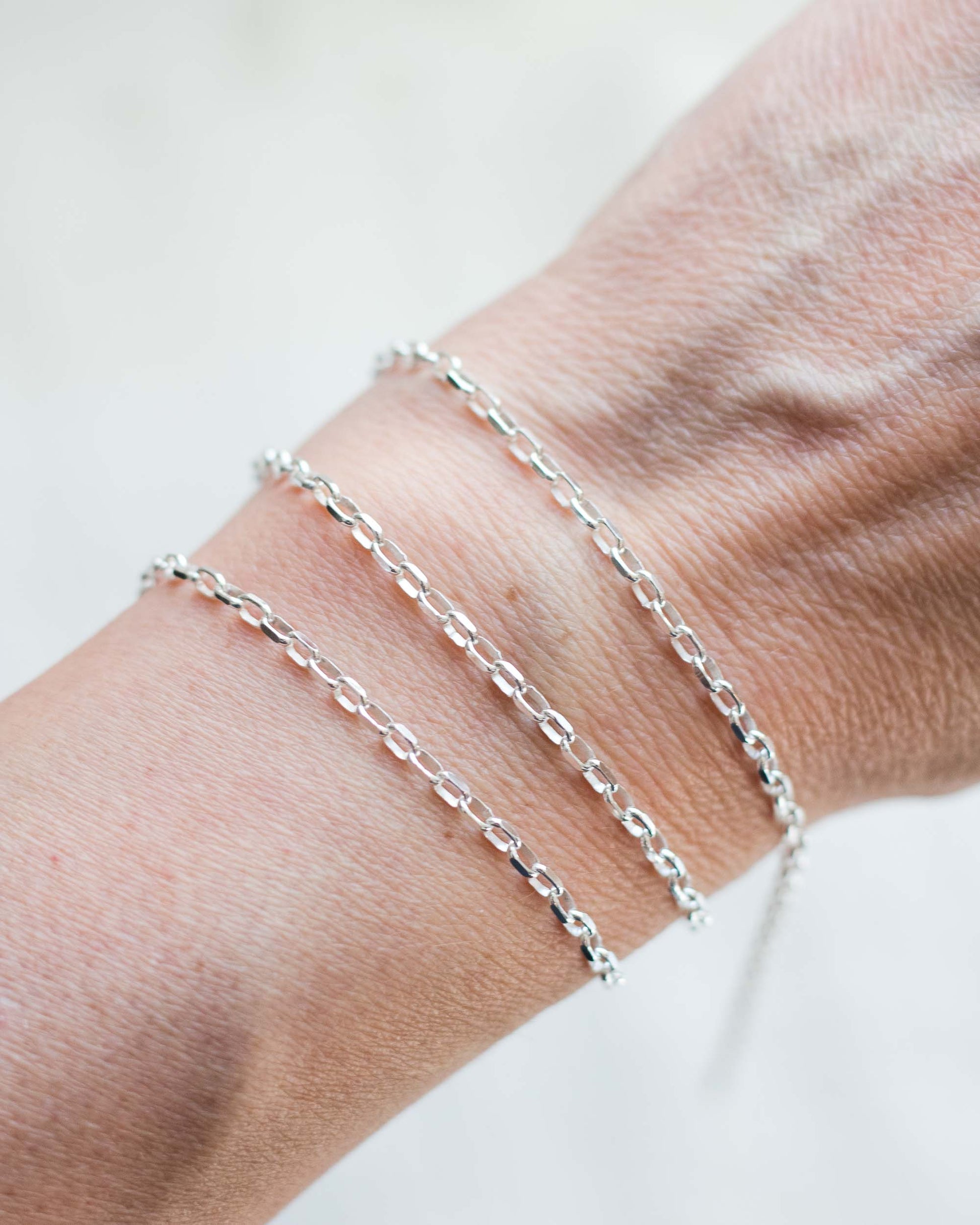 2mm diamond cut long rolo chain unfinished.