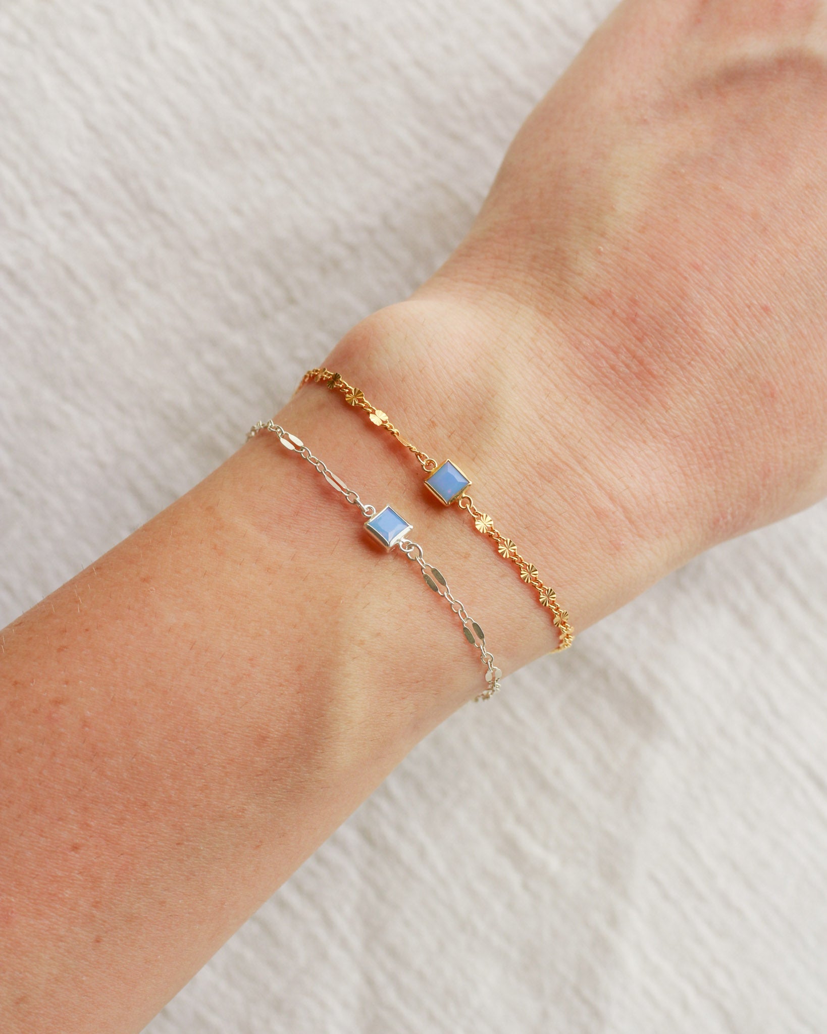 Blue imitation opal square shaped connector