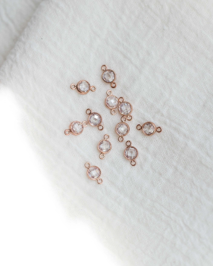 Clear cubic zirconia double sided checkerboard connector (April birthstone color)