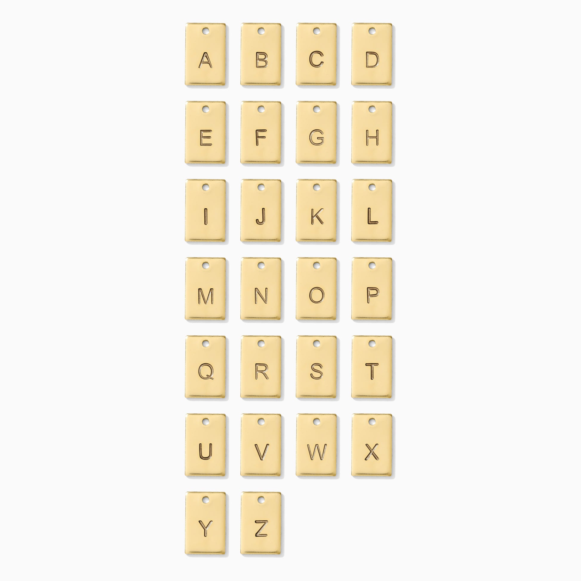 Celebrate your unique style with our sleek Alphabet Rectangle Charm featuring clean, modern Arial lettering from A to Z. Perfect for creating custom jewelry, these charms let you showcase initials, spell meaningful words, or add a subtle personal touch to any necklace or bracelet.