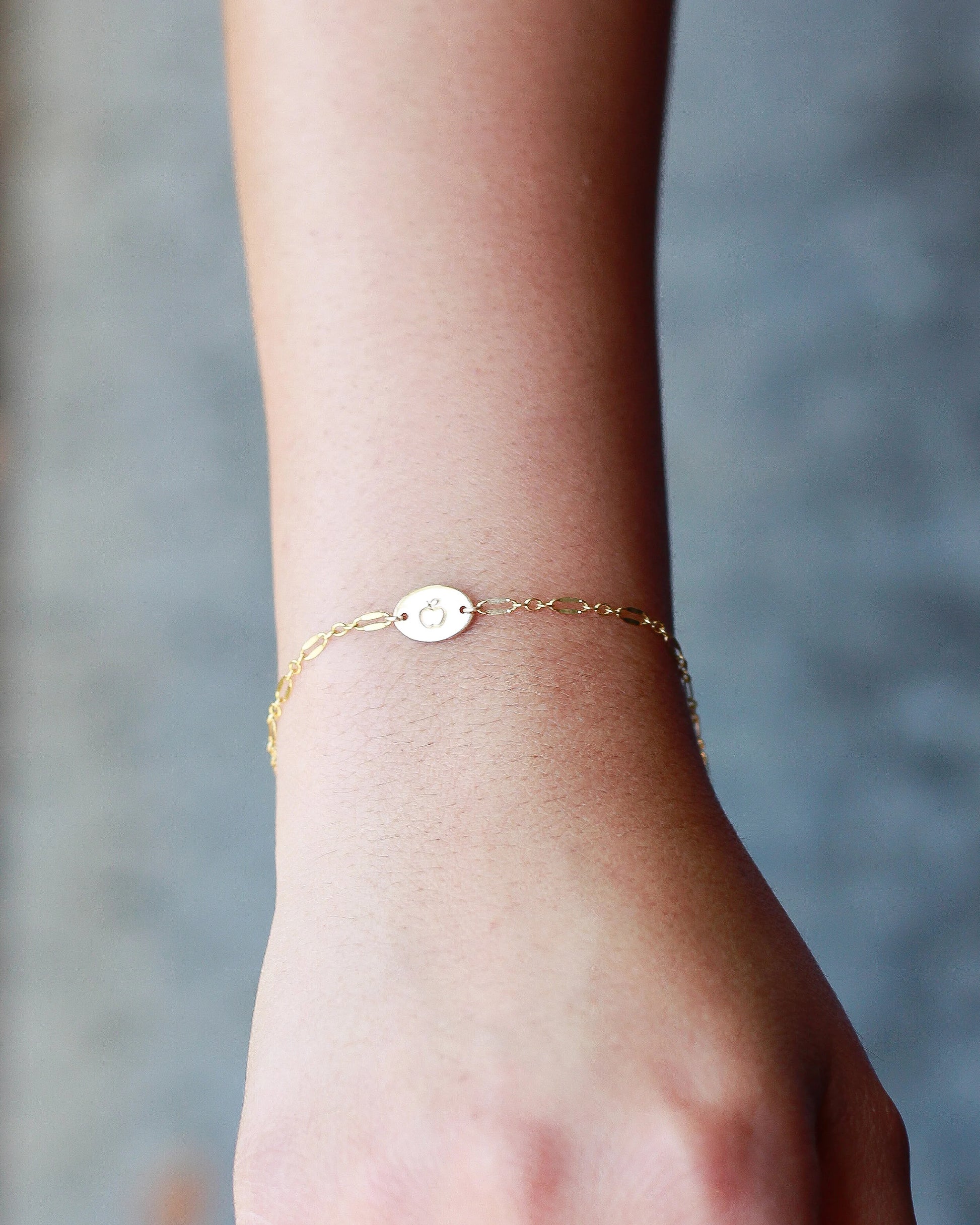 Oval connector charm hand stamped with apple
