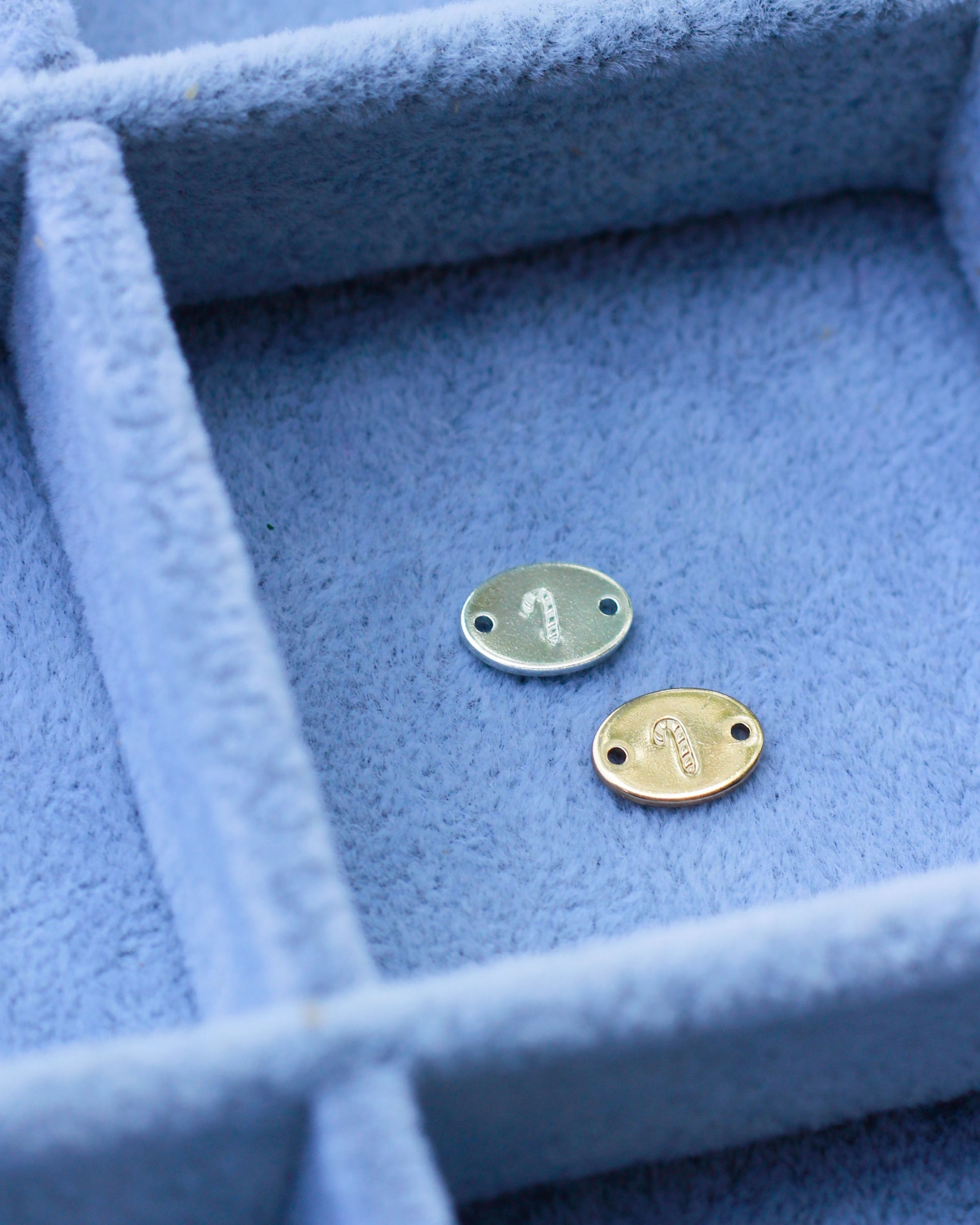 This is a hand stamped and handmade oval connector with our candy cane design.