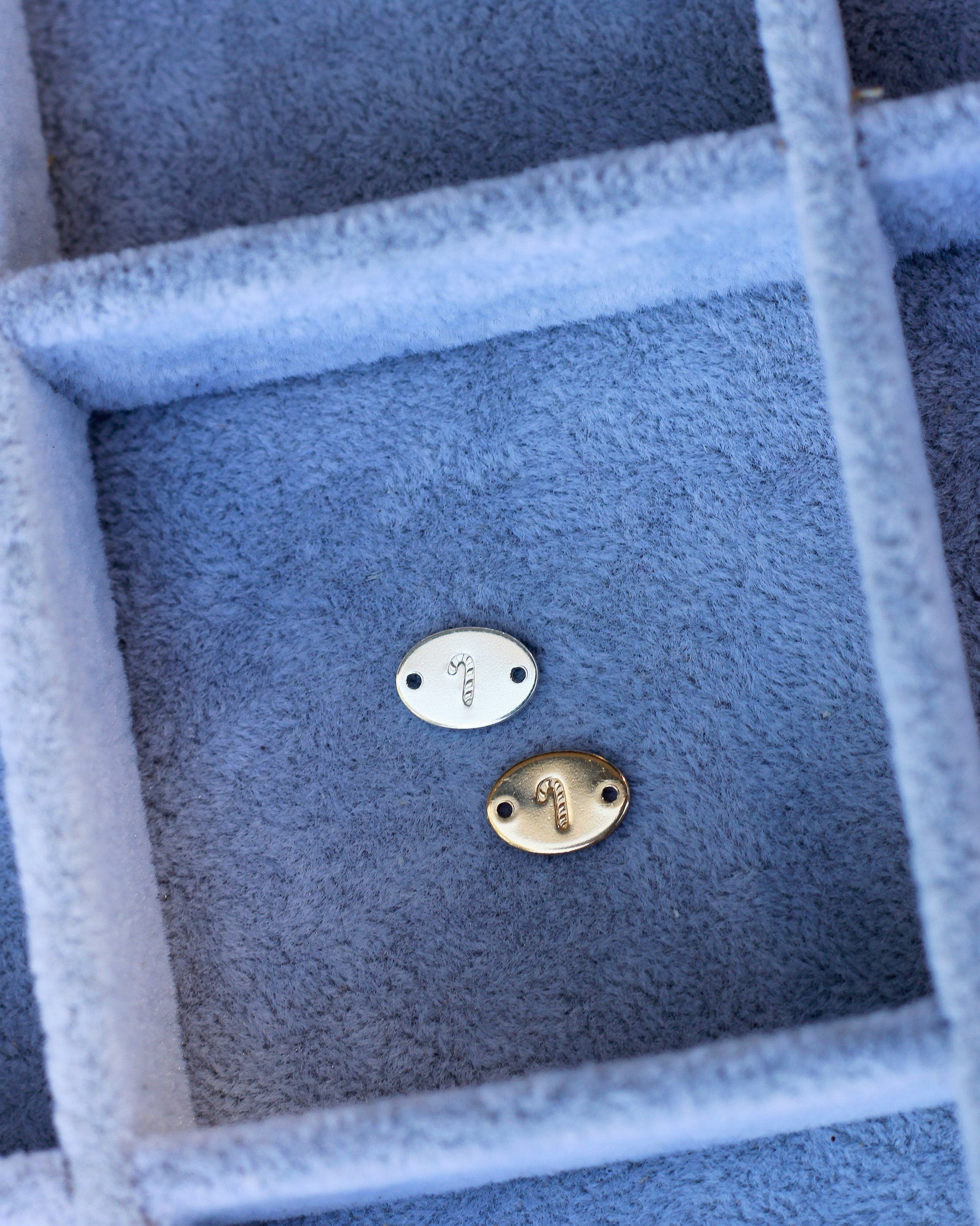 Oval connector charm hand stamped with candy cane