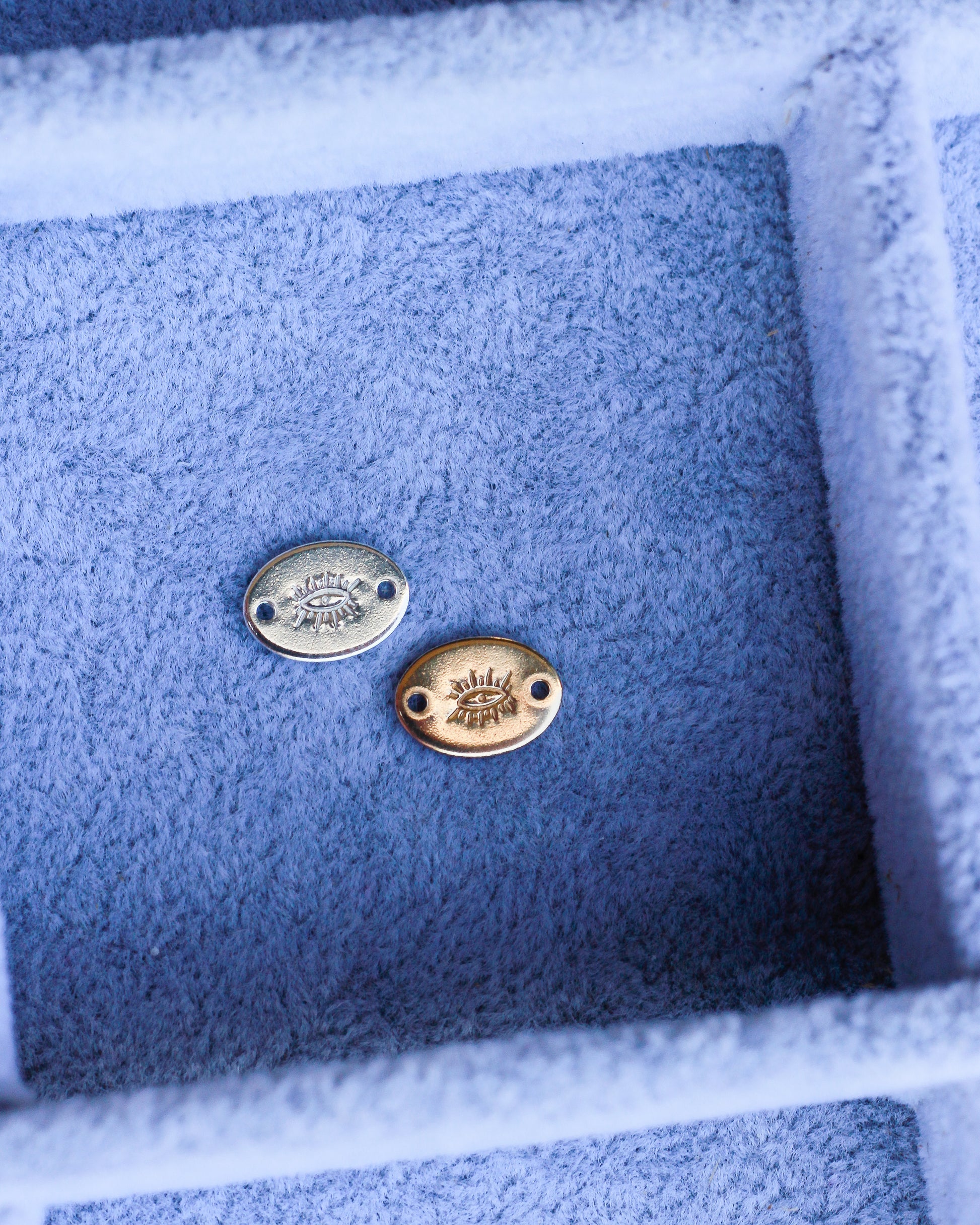 This is a hand stamped and handmade oval connector with our eye design.