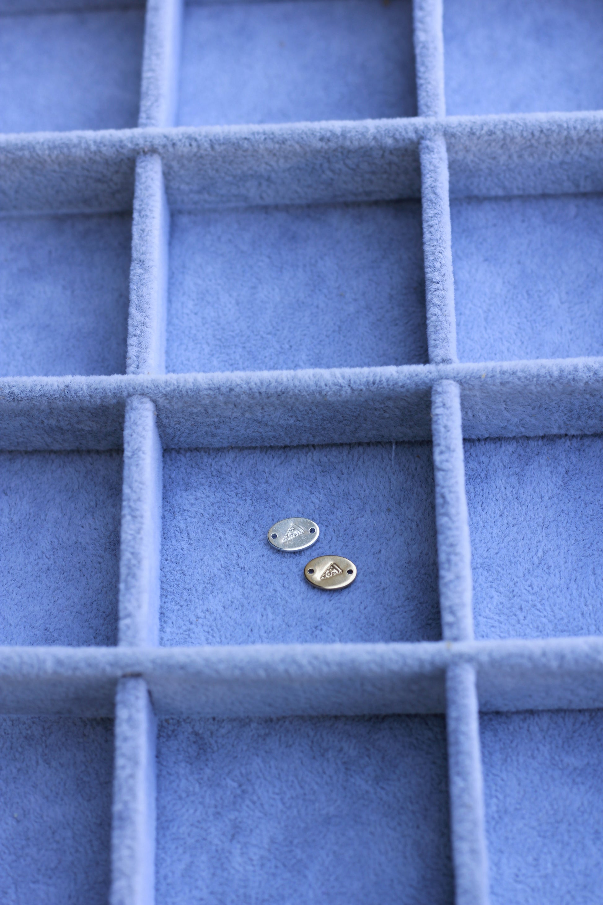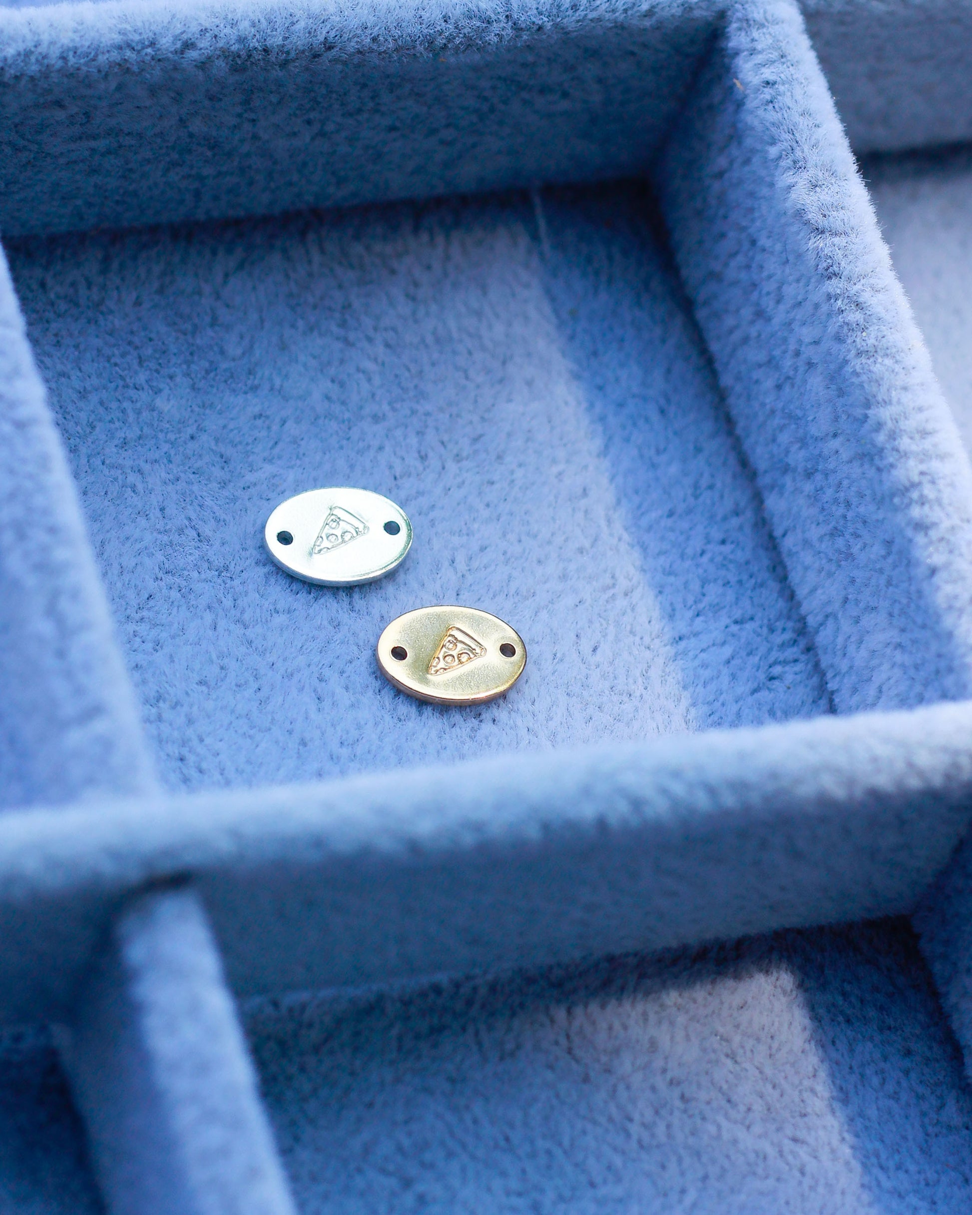 This is a hand stamped and handmade oval connector with our pizza design.