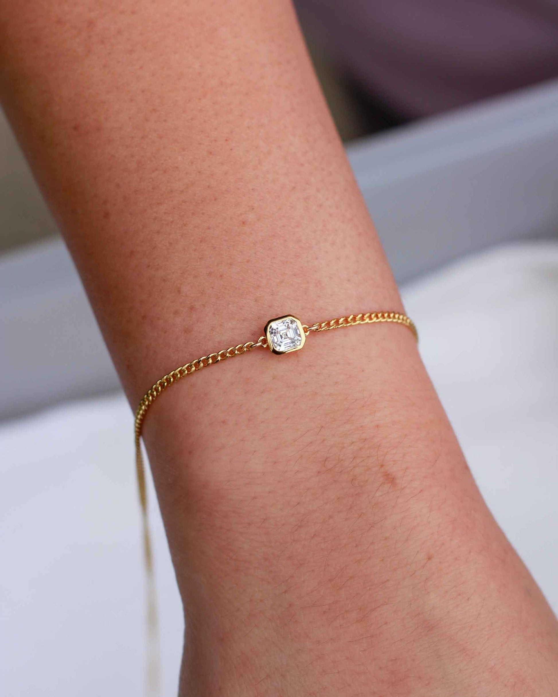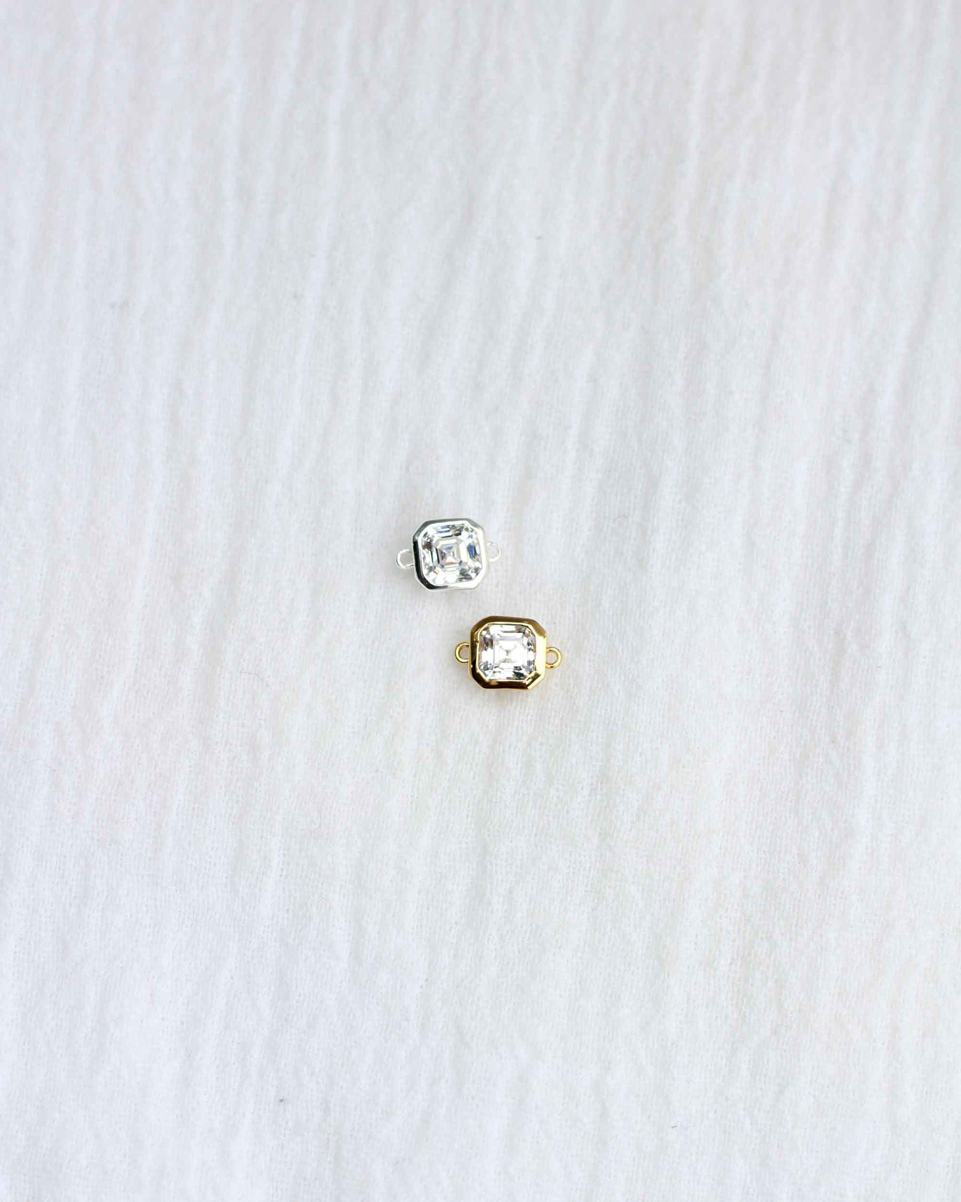 White cubic zirconia octagon Asscher cut connector